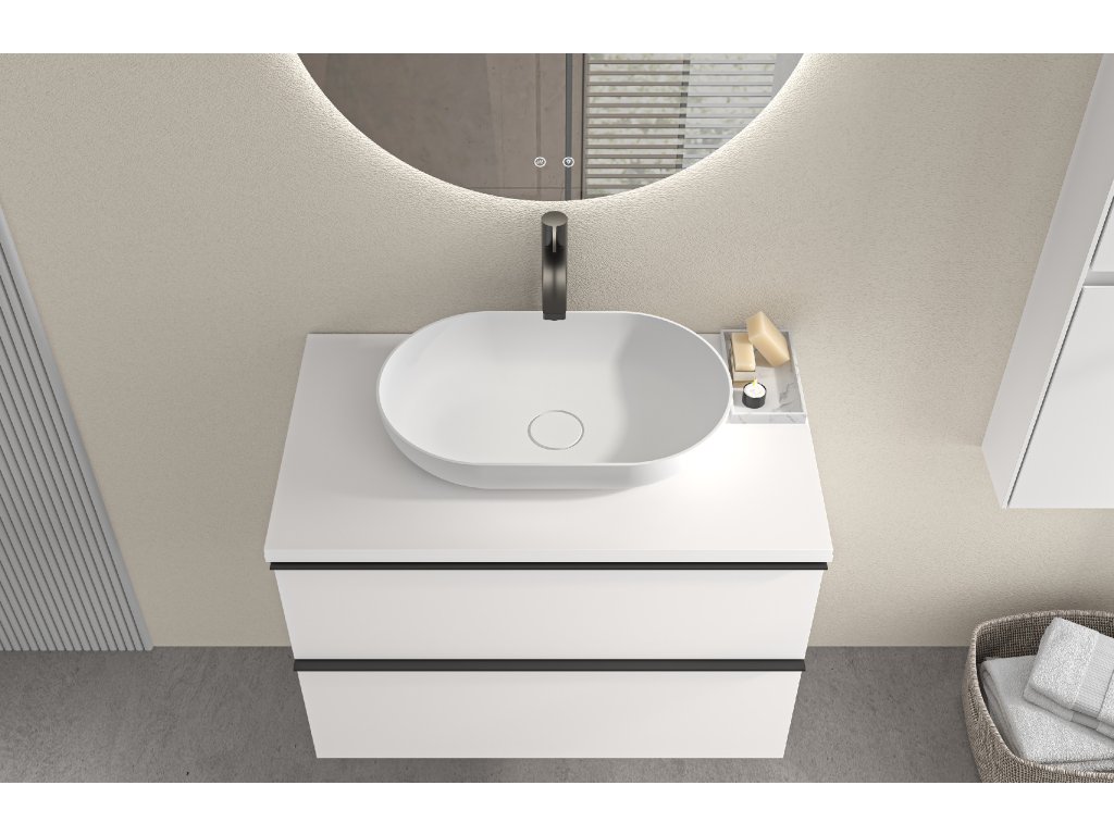 CERANO - Szafka łazienkowa pod umywalkę z uchwytem/blatem Velora - 36 mm - biały mat, uchwyt czarny - 79x49,8x46 cm