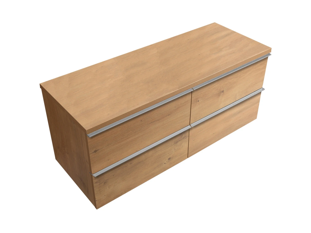 CERANO - Szafka łazienkowa Velora - dąb miodowy, uchwyt chromowany + blat umywalkowy Navira Pro - 36 mm - 140x56,6x46,5 cm
