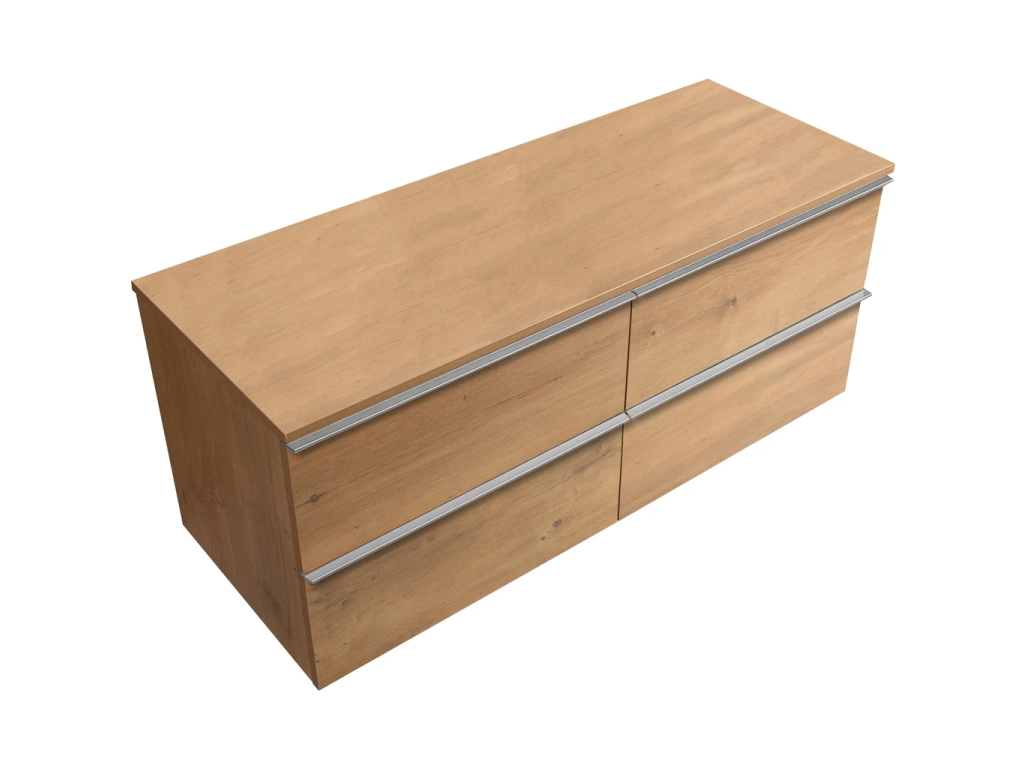CERANO - Szafka łazienkowa Velora - dąb miodowy, uchwyt chromowany + blat umywalkowy Navira Slim - 18 mm - 120x54,8x46,5 cm