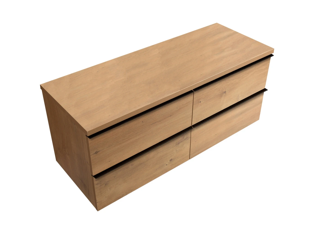 CERANO - Szafka łazienkowa Velora - dąb miodowy, uchwyt czarny + blat umywalkowy Navira Pro - 36 mm - 160x56,6x46,5 cm