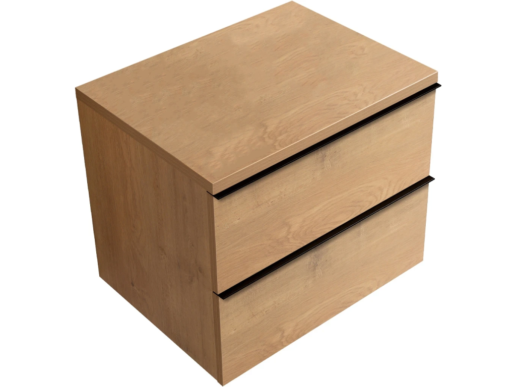CERANO - Szafka łazienkowa Velora - dąb miodowy, uchwyt czarny + blat umywalkowy Navira Pro - 36 mm - 60x56,6x46,5 cm