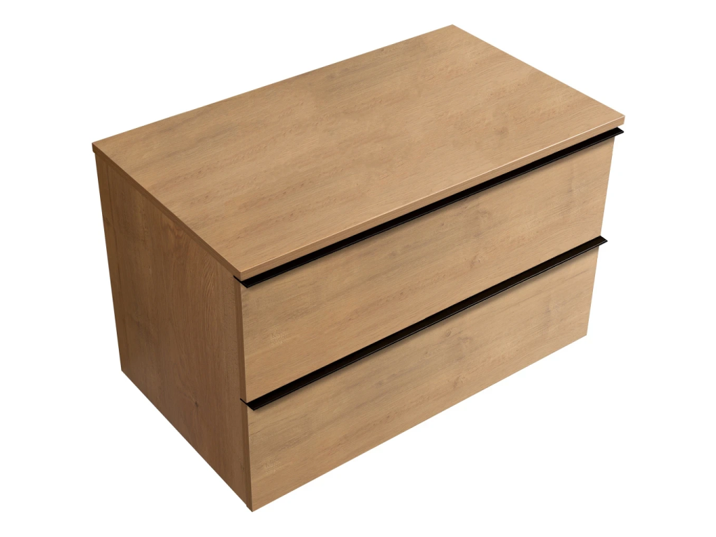 CERANO - Szafka łazienkowa Velora - dąb miodowy, uchwyt czarny + blat umywalkowy Navira Slim - 18 mm - 80x54,8x46,5 cm