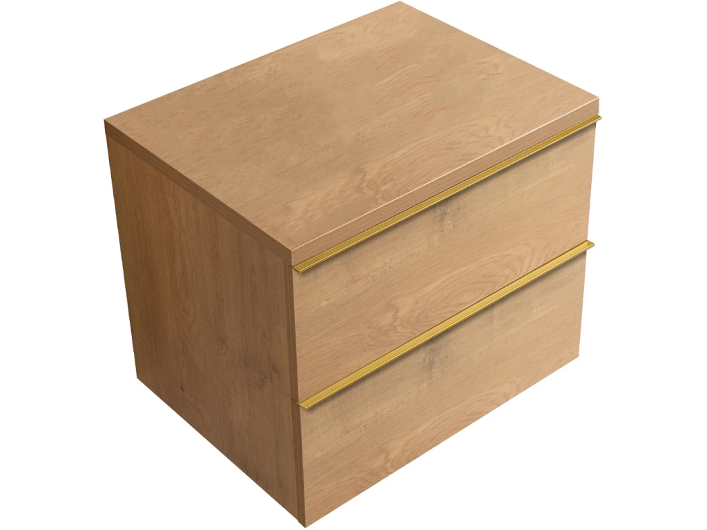 CERANO - Szafka łazienkowa Velora - dąb miodowy, uchwyt złoty + blat umywalkowy Navira Pro - 36 mm - 60x56,6x46,5 cm