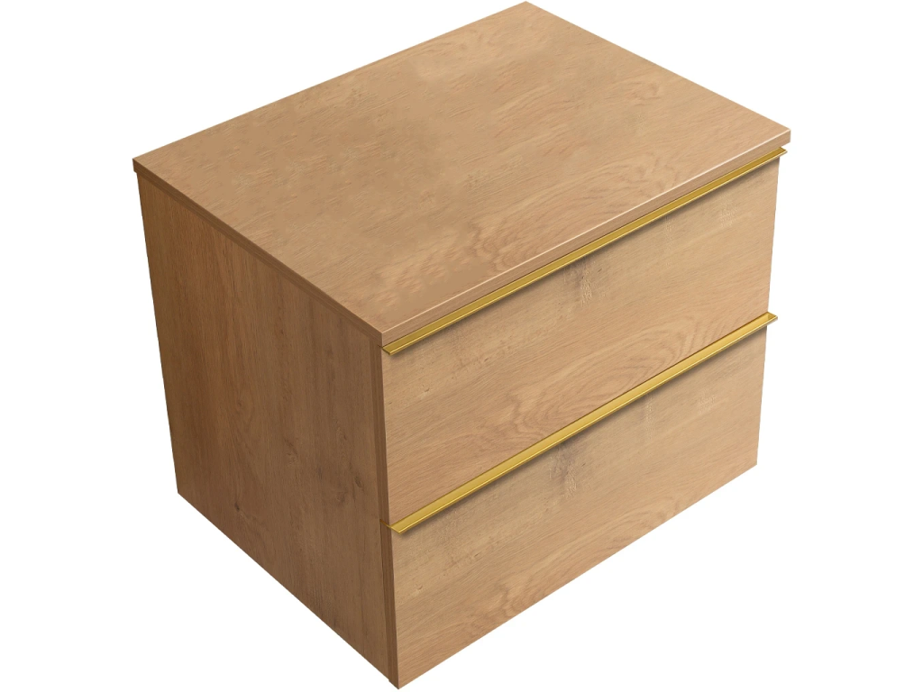 CERANO - Szafka łazienkowa Velora - dąb miodowy, uchwyt złoty + blat umywalkowy Navira Slim - 18 mm - 60x54,8x46,5 cm