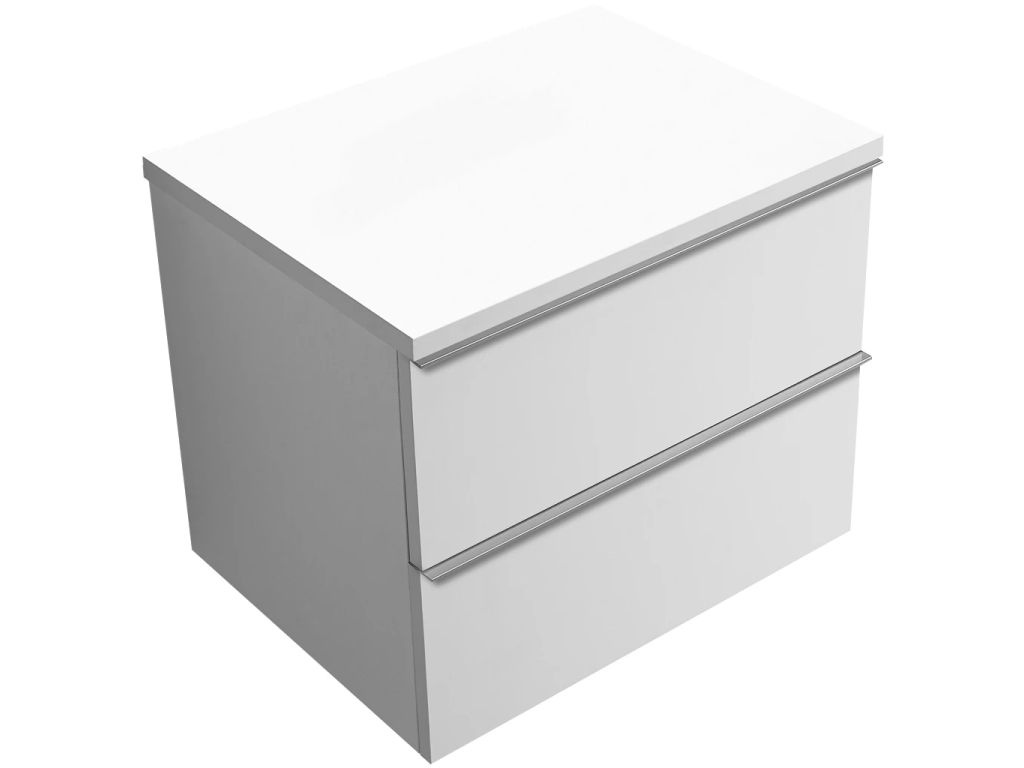 CERANO - Szafka łazienkowa Velora - matowa biel, chromowany uchwyt + blat umywalkowy Navira Pro - 36 mm - 60x56,6x46,5 cm