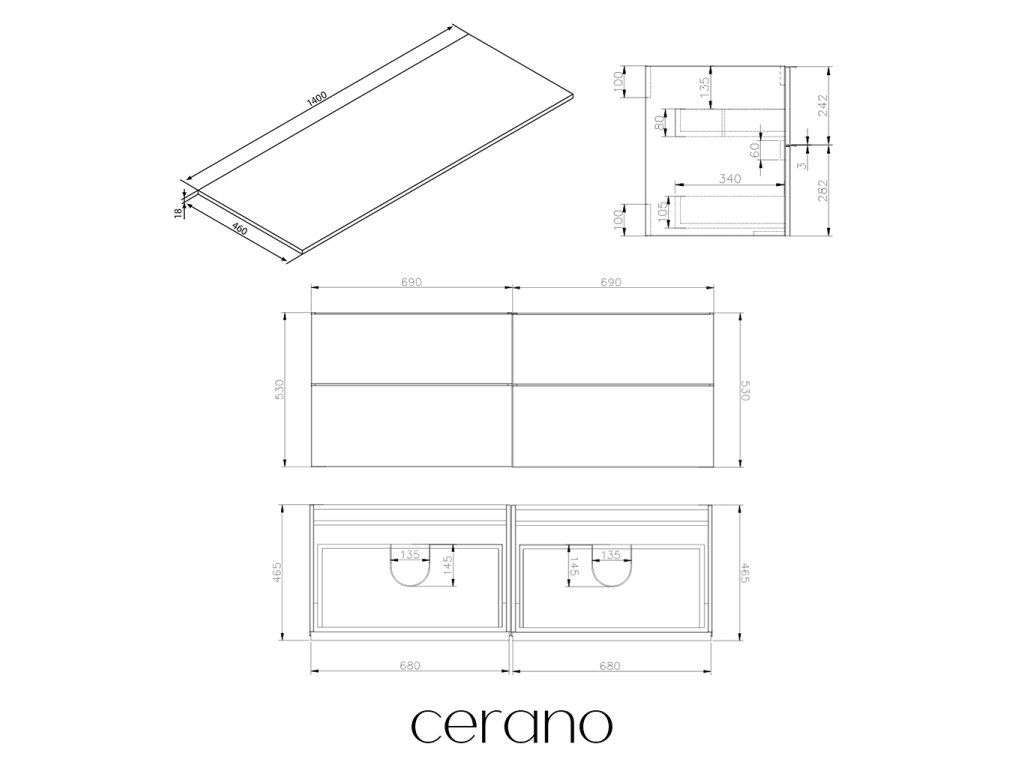 CERANO - Szafka łazienkowa Velora - matowa biel, chromowany uchwyt + blat umywalkowy Navira Slim - 18 mm - 140x54,8x46,5 cm