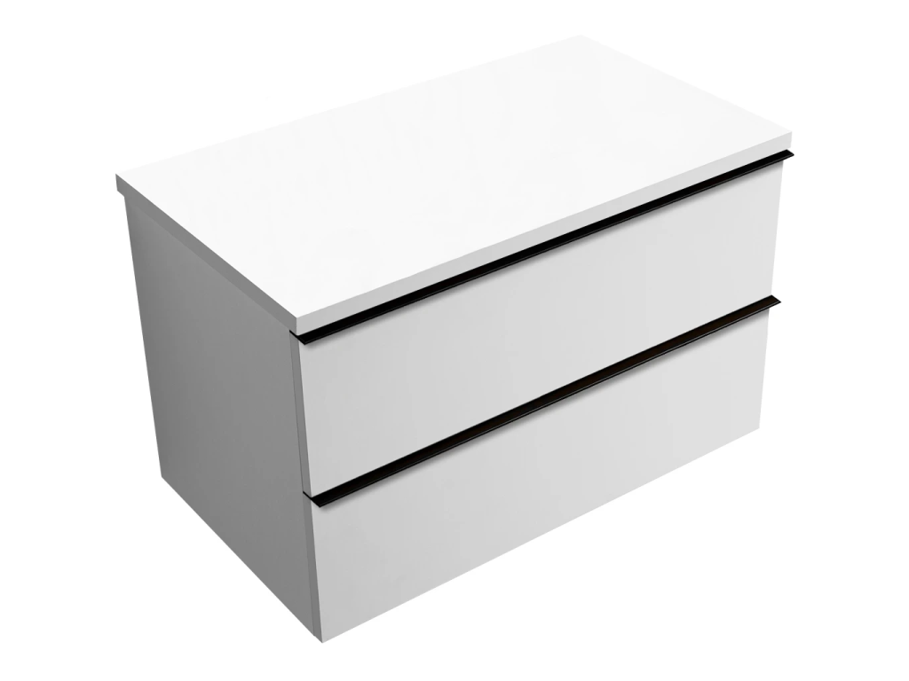 CERANO - Szafka łazienkowa Velora - matowa biel, czarny uchwyt + blat umywalkowy Navira Pro - 36 mm - 100x56,6x46,5 cm