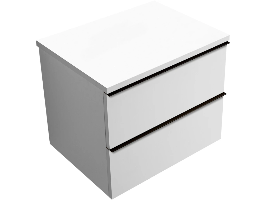 CERANO - Szafka łazienkowa Velora - matowa biel, czarny uchwyt + blat umywalkowy Navira Pro - 36 mm - 60x56,6x46,5 cm
