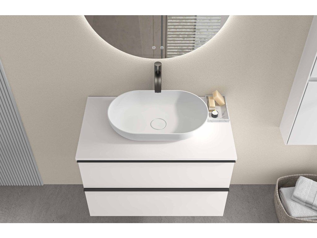 CERANO - Szafka łazienkowa Velora - matowa biel, czarny uchwyt + blat umywalkowy Navira Slim - 18 mm - 80x54,8x46,5 cm