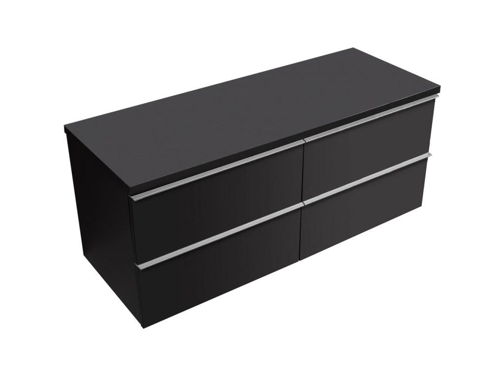 CERANO - Szafka łazienkowa Velora - matowa czerń, chromowany uchwyt + blat umywalkowy Navira Pro - 36 mm - 120x56,6x46,5 cm