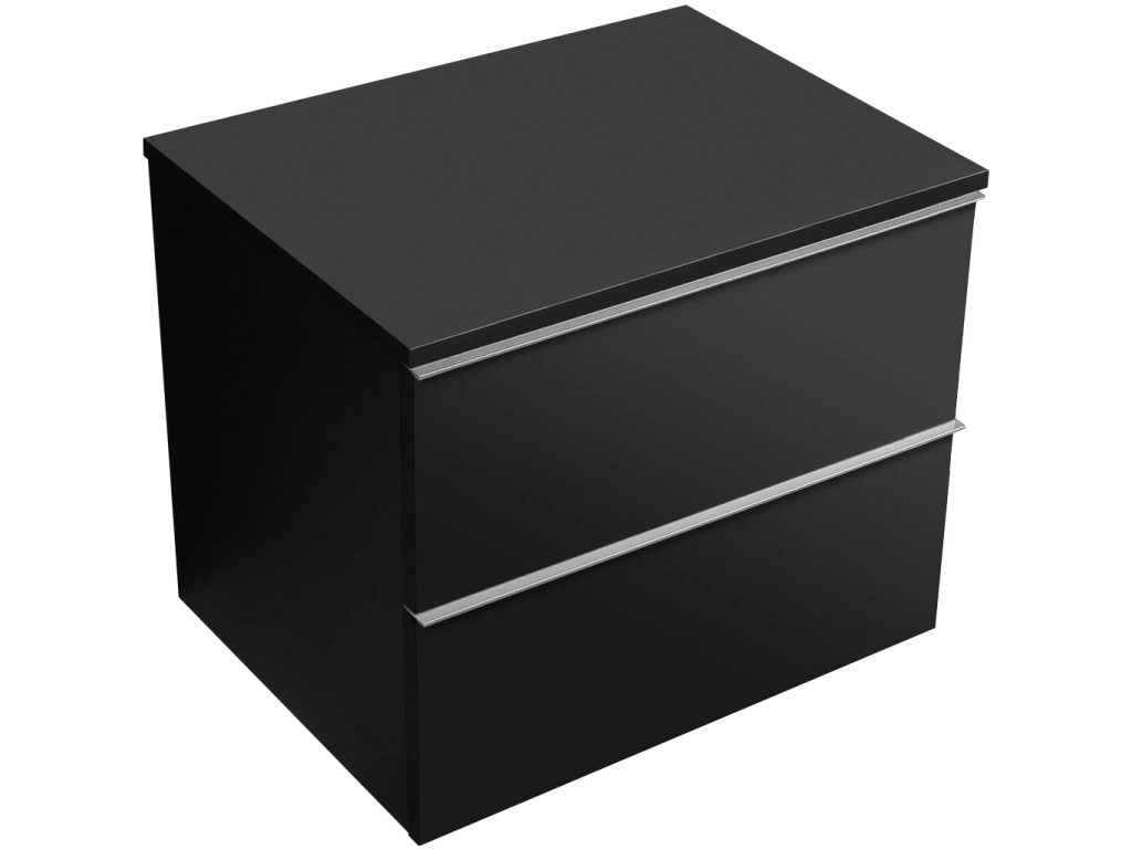 CERANO - Szafka łazienkowa Velora - matowa czerń, chromowany uchwyt + blat umywalkowy Navira Slim - 18 mm - 60x54,8x46,5 cm