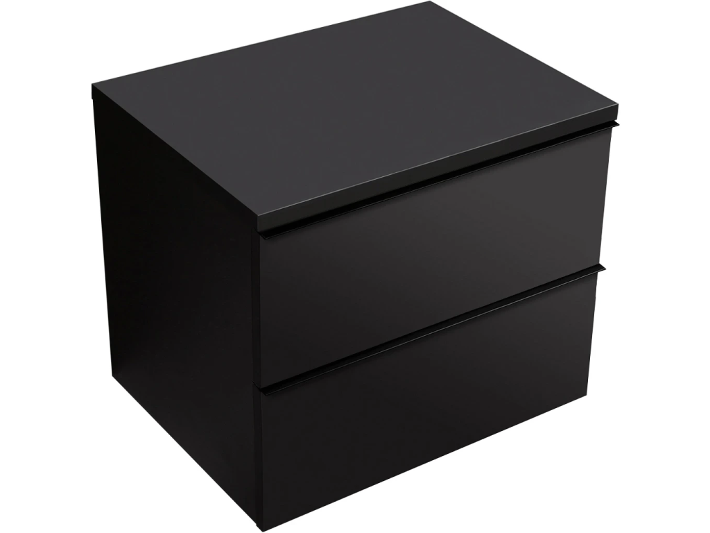 CERANO - Szafka łazienkowa Velora - matowa czerń, czarny uchwyt + blat umywalkowy Navira Pro - 36 mm - 60x56,6x46,5 cm