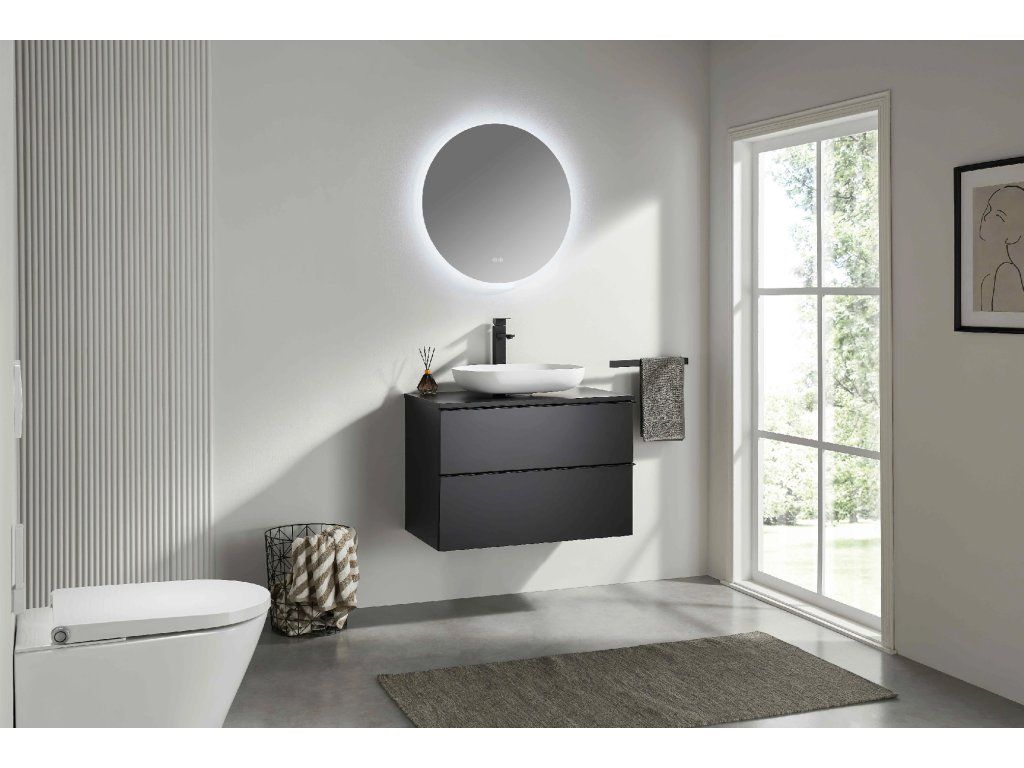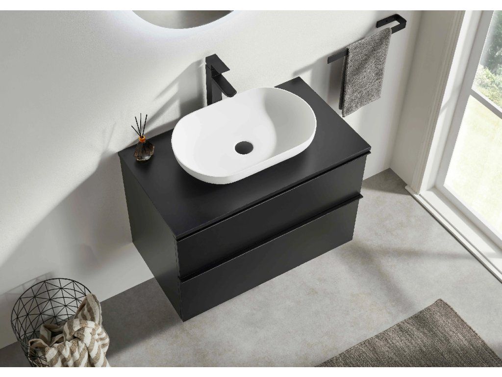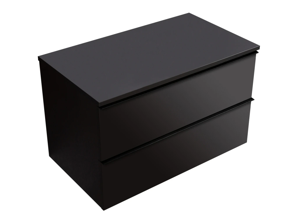 CERANO - Szafka łazienkowa Velora - matowa czerń, czarny uchwyt + blat umywalkowy Navira Slim - 18 mm - 100x54,8x46,5 cm