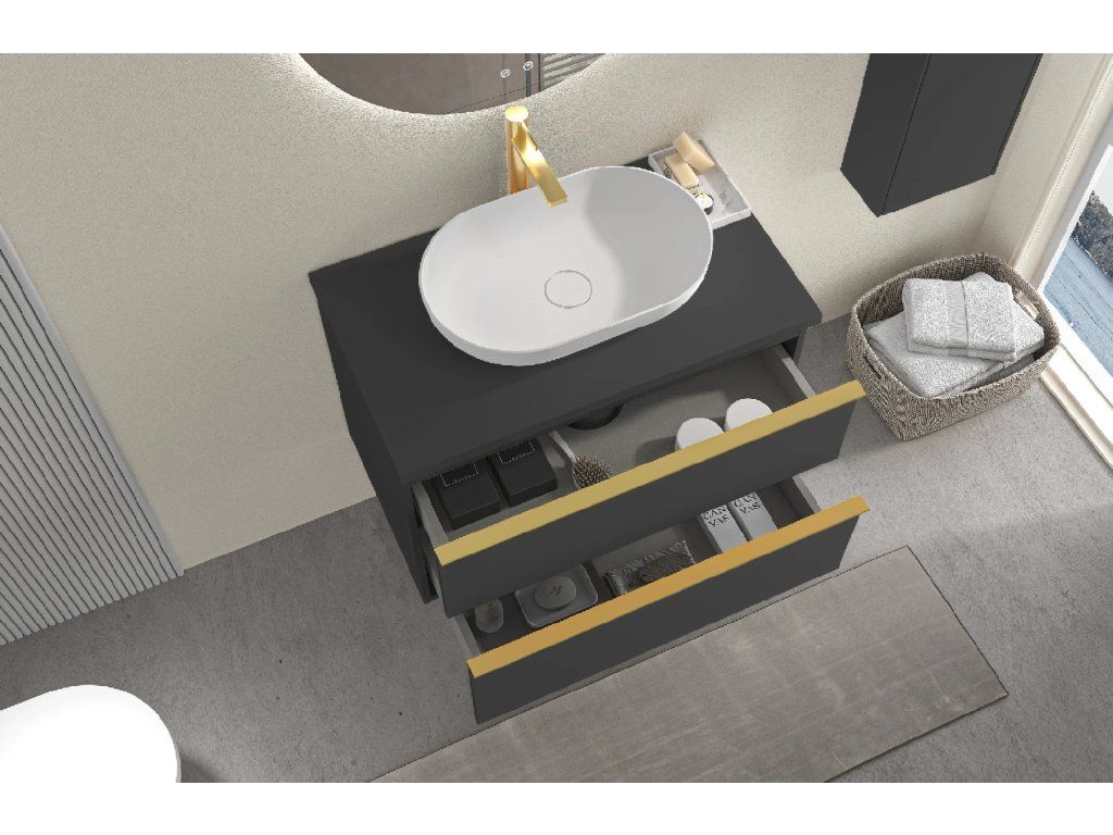 CERANO - Szafka łazienkowa Velora - matowa czerń, złoty uchwyt + blat umywalkowy Navira Pro - 36 mm - 100x56,6x46,5 cm