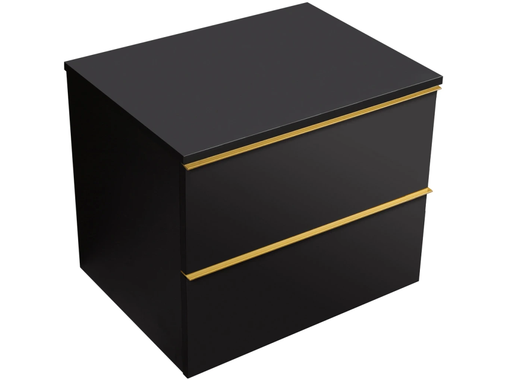 CERANO - Szafka łazienkowa Velora - matowa czerń, złoty uchwyt + blat umywalkowy Navira Slim - 18 mm - 70x54,8x46,5 cm