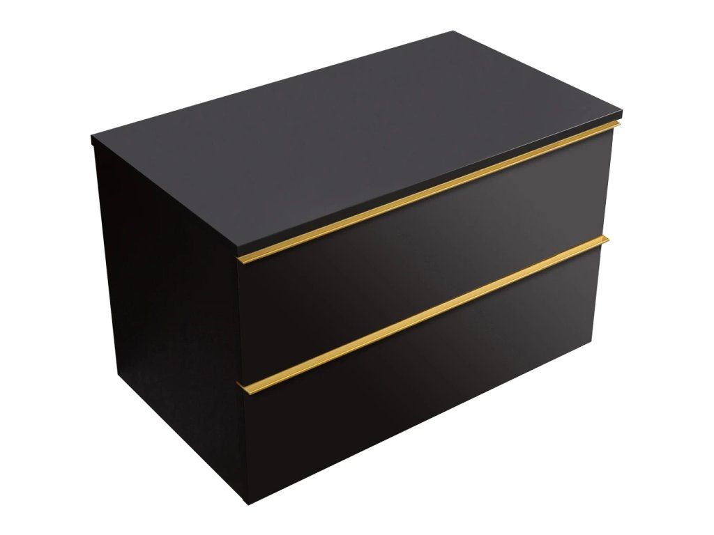 CERANO - Szafka łazienkowa Velora - matowa czerń, złoty uchwyt + blat umywalkowy Navira Slim - 18 mm - 80x54,8x46,5 cm