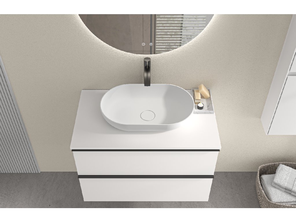 CERANO - Szafka łazienkowa Velora z uchwytem/blatem z odlewanego marmuru Elanys - 12 mm - matowa biel, czarny uchwyt - 69x53x46 cm