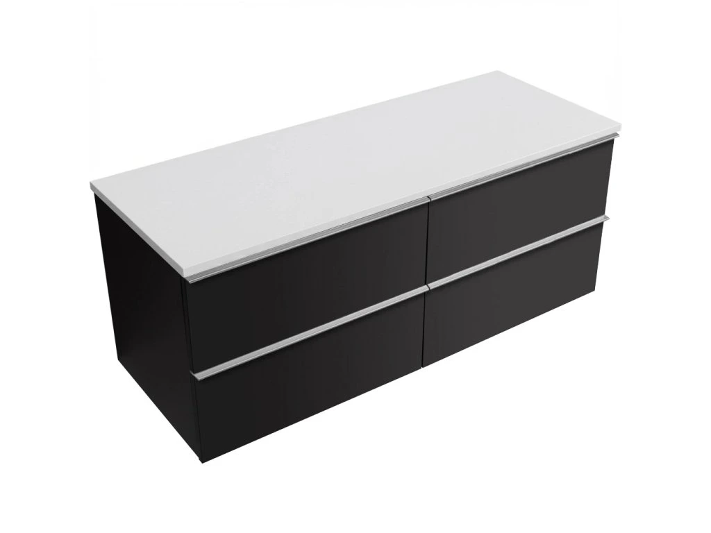 CERANO - Szafka łazienkowa Velora z uchwytem/blatem z odlewanego marmuru Elanys - 12 mm - matowa czerń, chromowany uchwyt - 138x53x45,2 cm