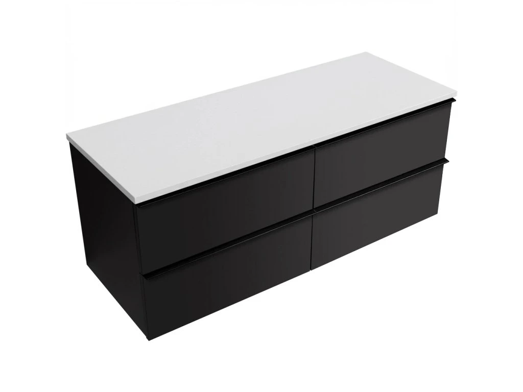 CERANO - Szafka łazienkowa Velora z uchwytem/blatem z odlewanego marmuru Elanys - 12 mm - matowa czerń, czarny uchwyt - 138x53x45,2 cm