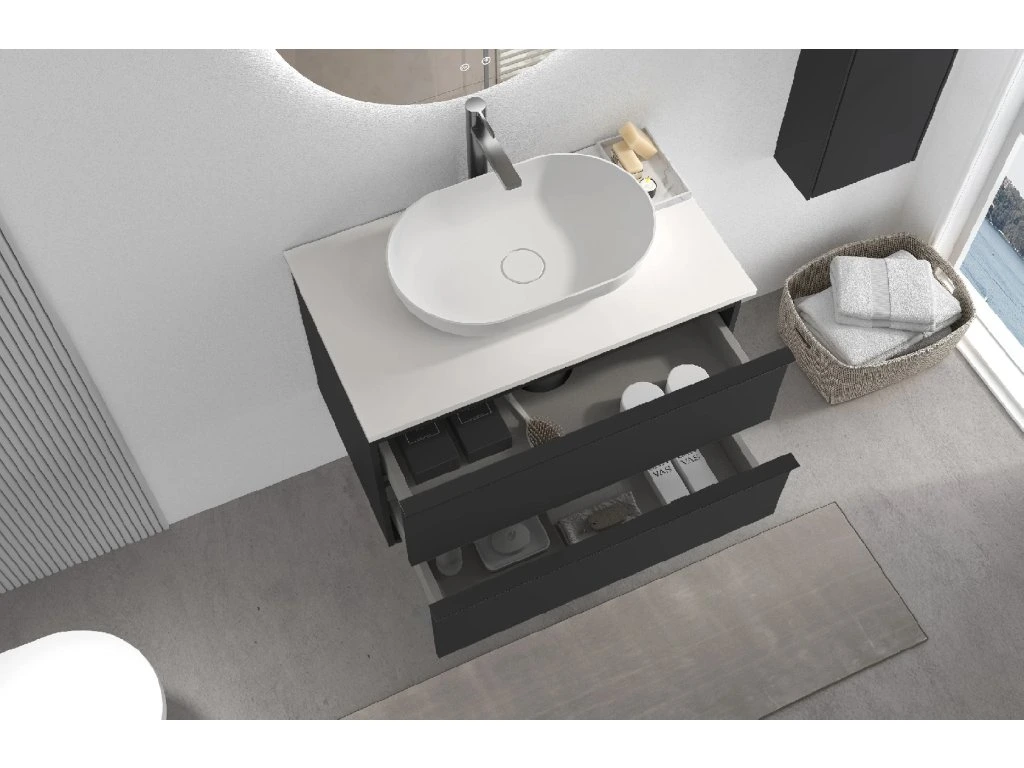 CERANO - Szafka łazienkowa Velora z uchwytem/blatem z odlewanego marmuru Elanys - 12 mm - matowa czerń, czarny uchwyt - 79x53x46 cm