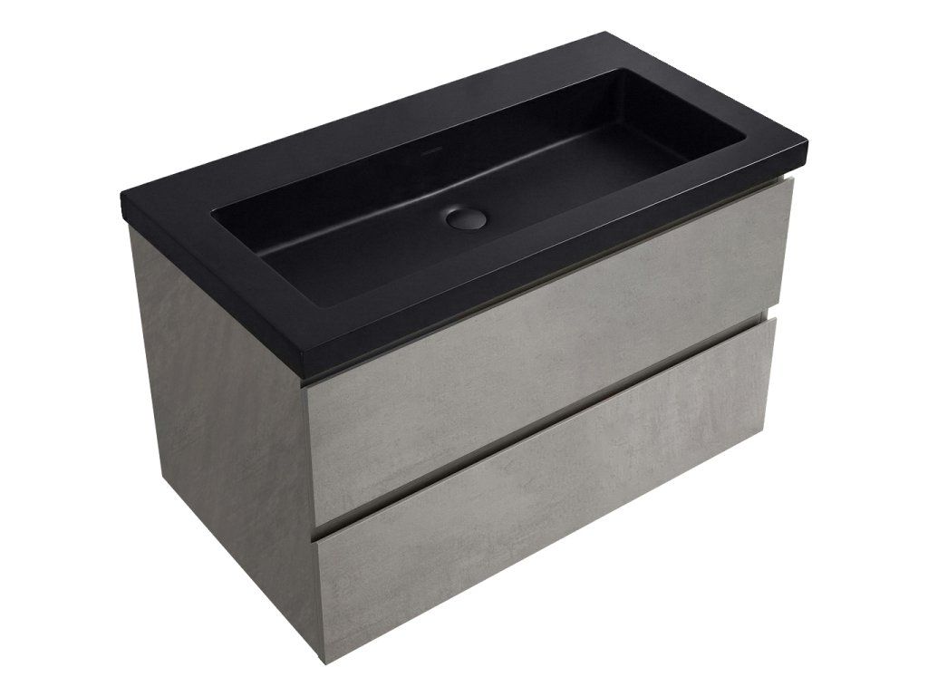 CERANO - Szafka łazienkowa Carole - betonowo-szary + umywalka marmurowa Ovo podświetlana - matowa czerń - 80,5x53x46,3 cm