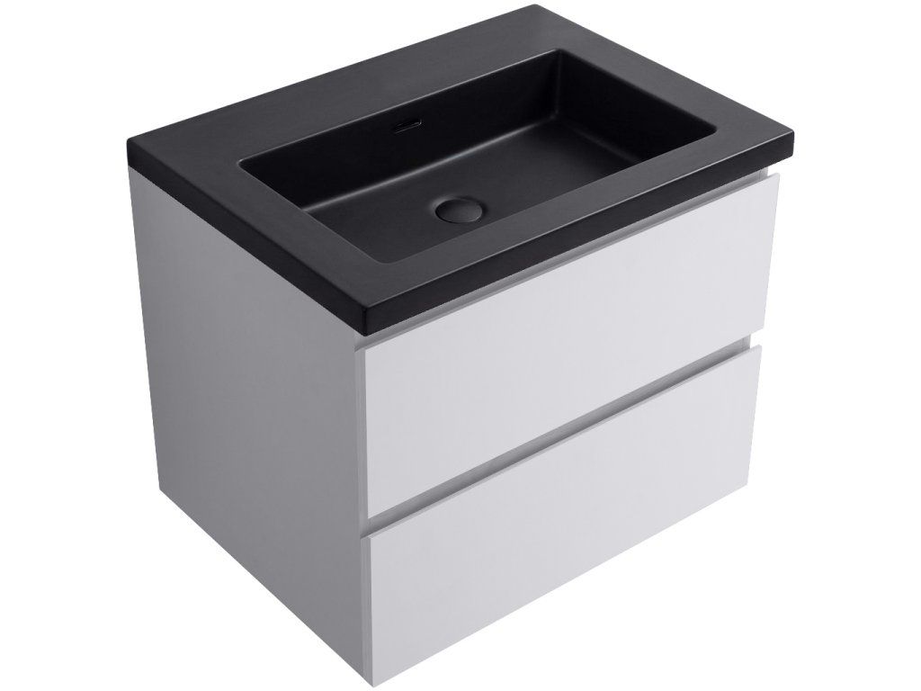 CERANO - Szafka łazienkowa Carole - biały mat + Umywalka Ovo podświetlana z marmuru - czarny mat - 60,5x53x46,3 cm