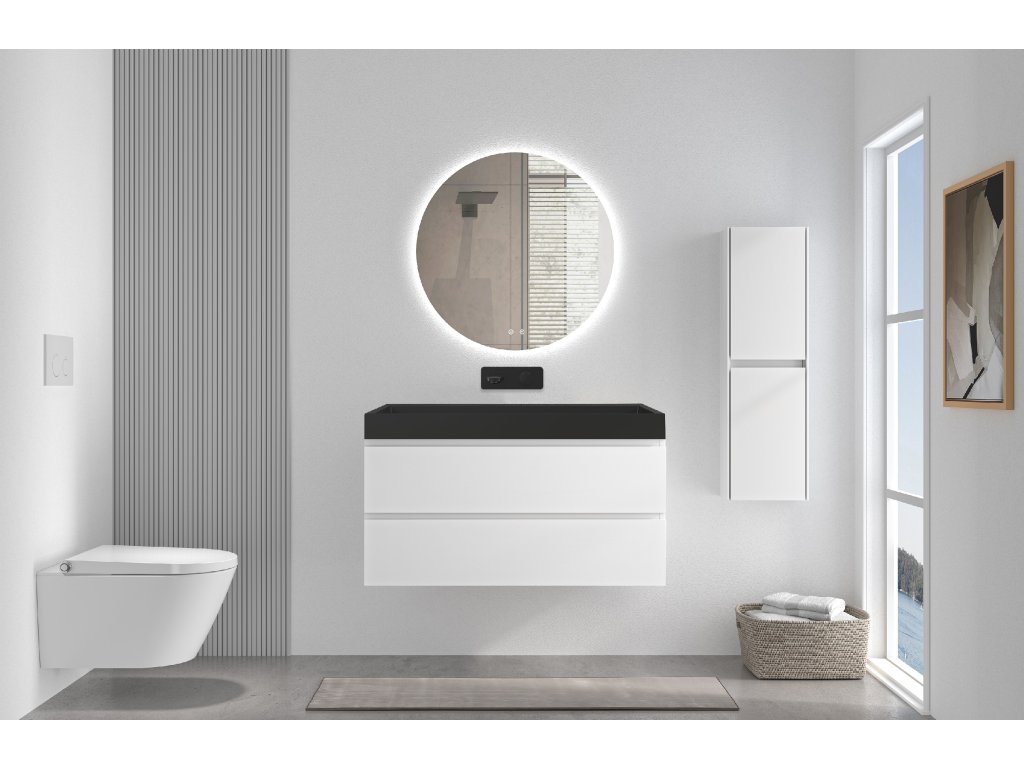 CERANO - Szafka łazienkowa Carole - biały mat + Umywalka z marmuru Vita podświetlana - czarny mat - 100x58x46 cm