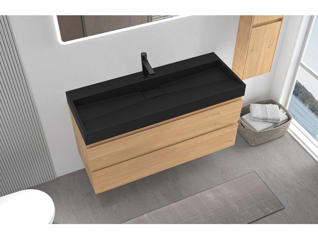 CERANO - Szafka łazienkowa Carole - dąb miodowy + umywalka marmurowa Vita lit. - otwierana - matowa czerń - 100x58x46 cm