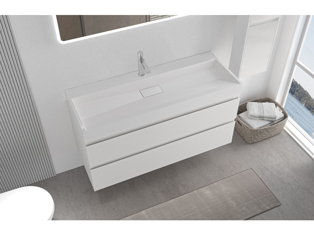 CERANO - Szafka łazienkowa Carole - matowa biel + umywalka marmurowa Vita podświetlana - otwierana - połyskująca biel - 100x58x46 cm