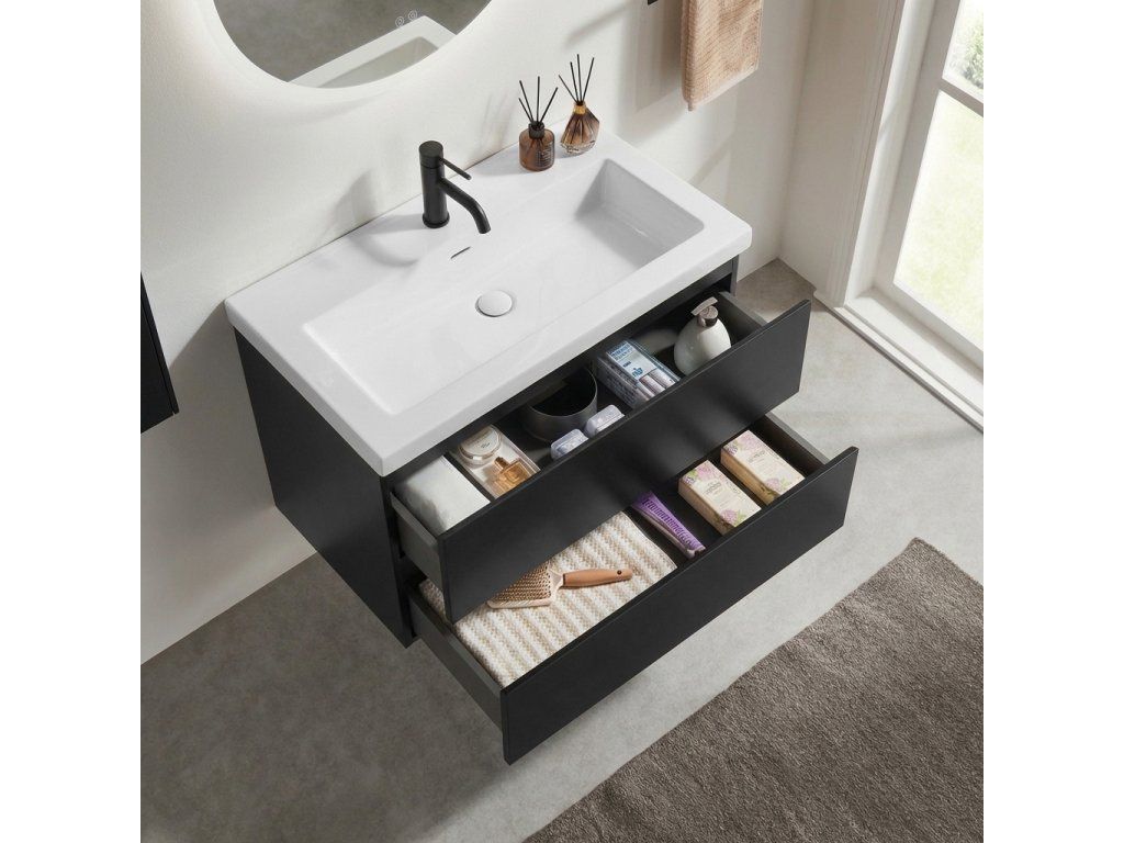 Szafka łazienkowa jest dostarczana w pełni zmontowana w fabryce – nie wymaga montażu, wystarczy rozpakować i powiesić. Profesjonalny montaż gwarantuje idealne dopasowanie, zwiększoną wytrzymałość i natychmiastową gotowość do użycia. Oszczędzasz czas i otrzymujesz niezawodne meble bez konieczności montażu.