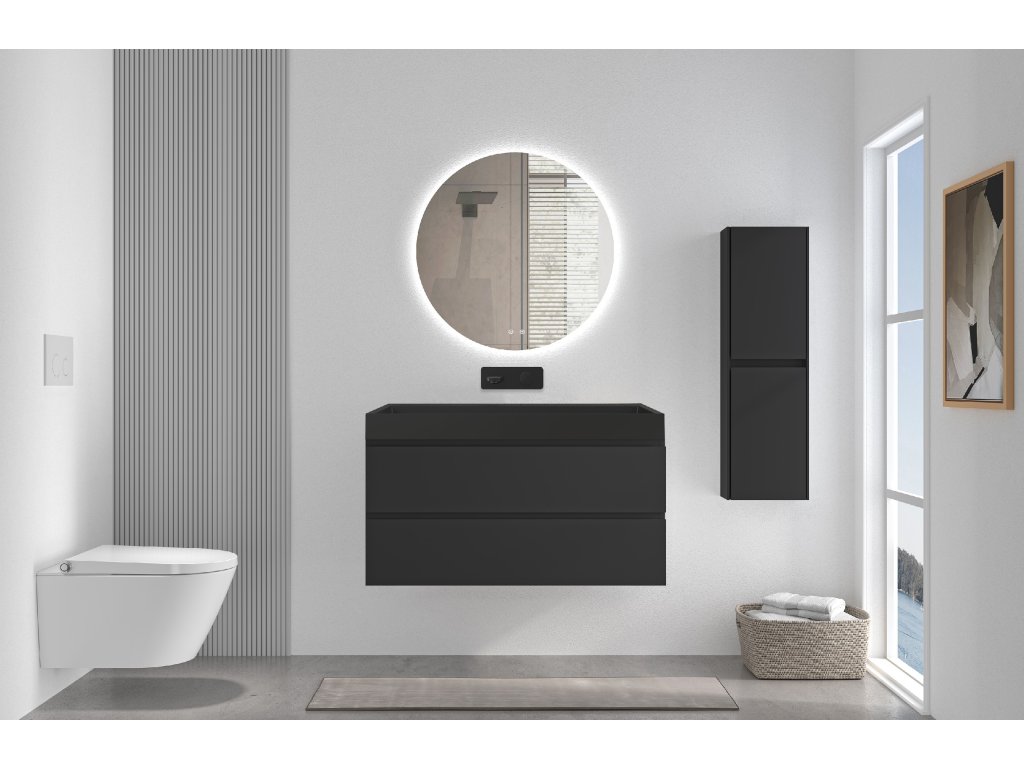 CERANO - Szafka łazienkowa Carole - matowa czerń + Umywalka marmurowa Vita podświetlana - matowa czerń - 100x58x46 cm