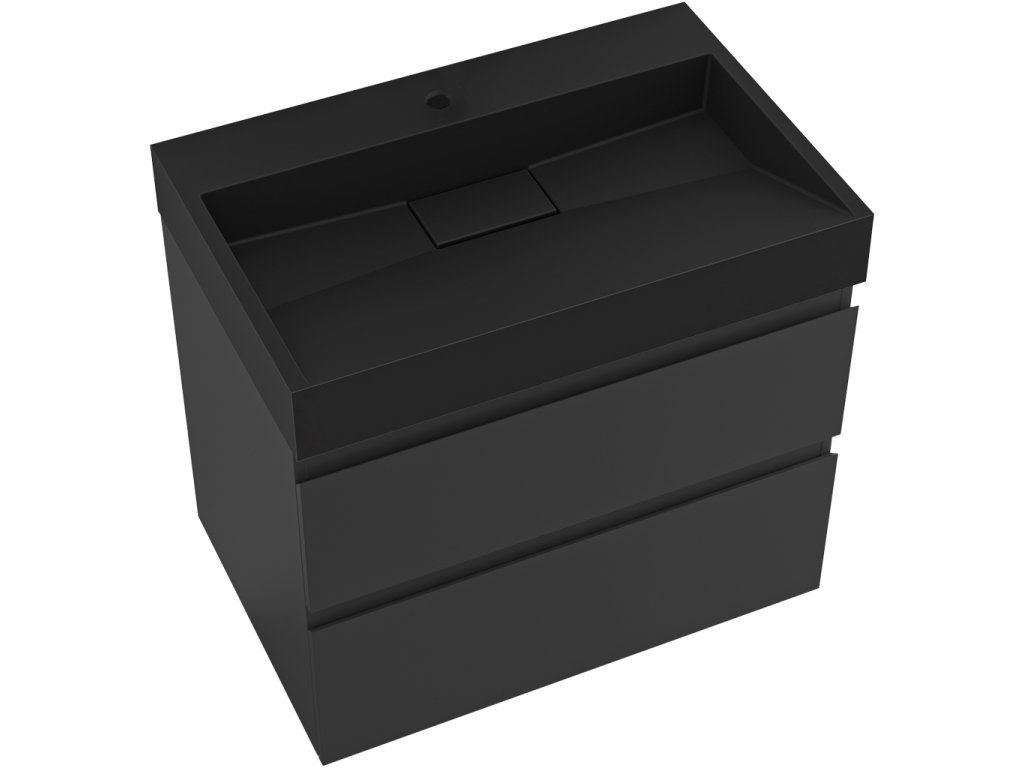 CERANO - Szafka łazienkowa Carole - matowa czerń + umywalka marmurowa Vita podświetlana - otwierana - matowa czerń - 70x58x46 cm