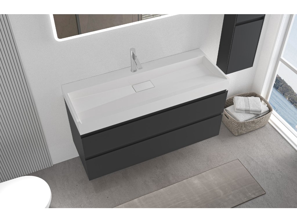 CERANO - Szafka łazienkowa Carole - matowa czerń + umywalka marmurowa Vita podświetlana - otwór - połyskująca biel - otwór na baterię - 100x58x46 cm