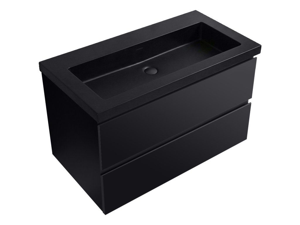 CERANO - Szafka łazienkowa Carole - matowa czerń + umywalka Ovo podświetlana marmurowa - matowa czerń - 80,5x53x46,3 cm