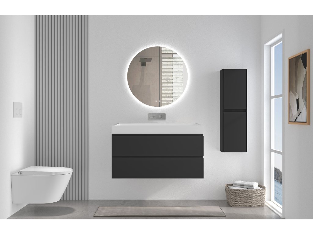 CERANO - Szafka łazienkowa Carole - matowa czerń + umywalka z marmuru Vita podświetlana - połyskująca biel - 100x58x46 cm