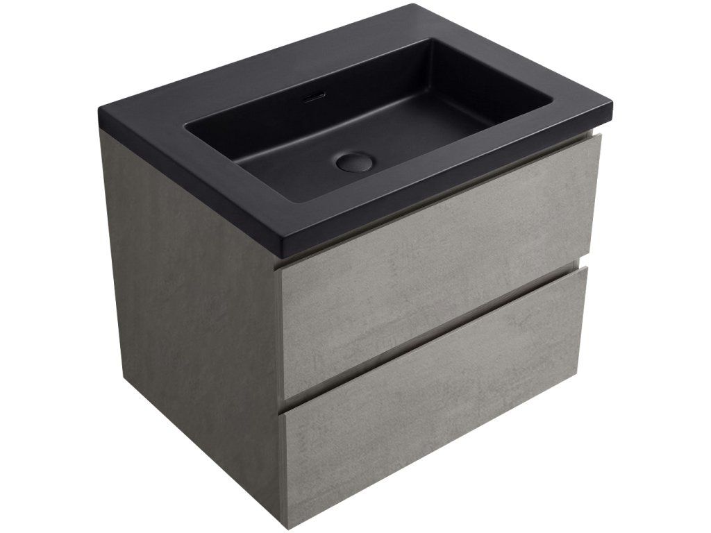 CERANO - Szafka łazienkowa Carole - szary beton + umywalka Ovo z odlewanego marmuru - matowa czerń - 70,5x53x46,3 cm