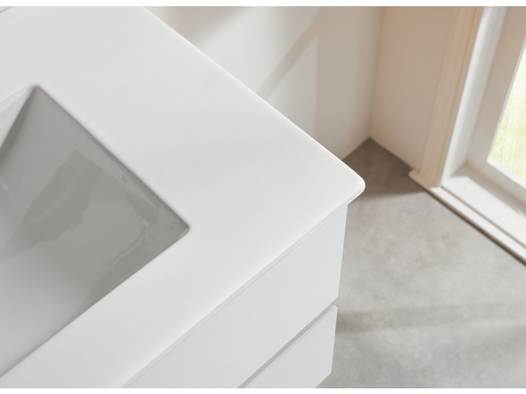 Szafki łazienkowe wykonane są z laminatu MDF (płyty pilśniowej średniej gęstości) pokrytego folią melaminową, która jest odporna na wilgoć, zarysowania, promieniowanie UV i powszechnie stosowane środki czyszczące. Powierzchnia jest gładka, twarda, jednorodna i łatwa w czyszczeniu. Płyty MDF nie odkształcają się jak lite drewno. Uszkodzenie mechaniczne laminatu może prowadzić do zawilgocenia rdzenia MDF.