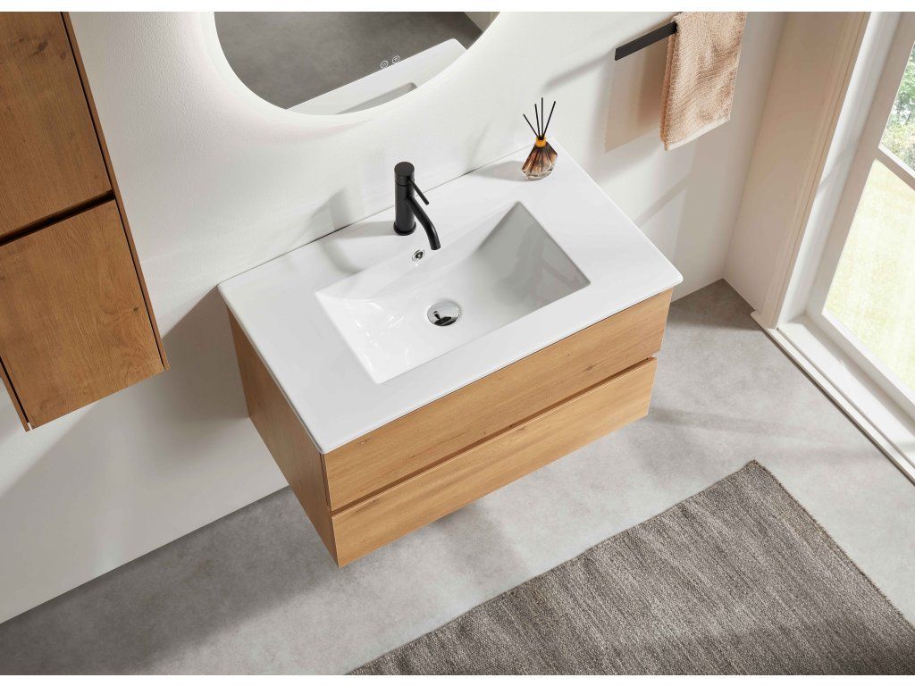 CERANO - Szafka łazienkowa Carole + umywalka ceramiczna Todo - dąb miodowy - 101x50x46,5 cm