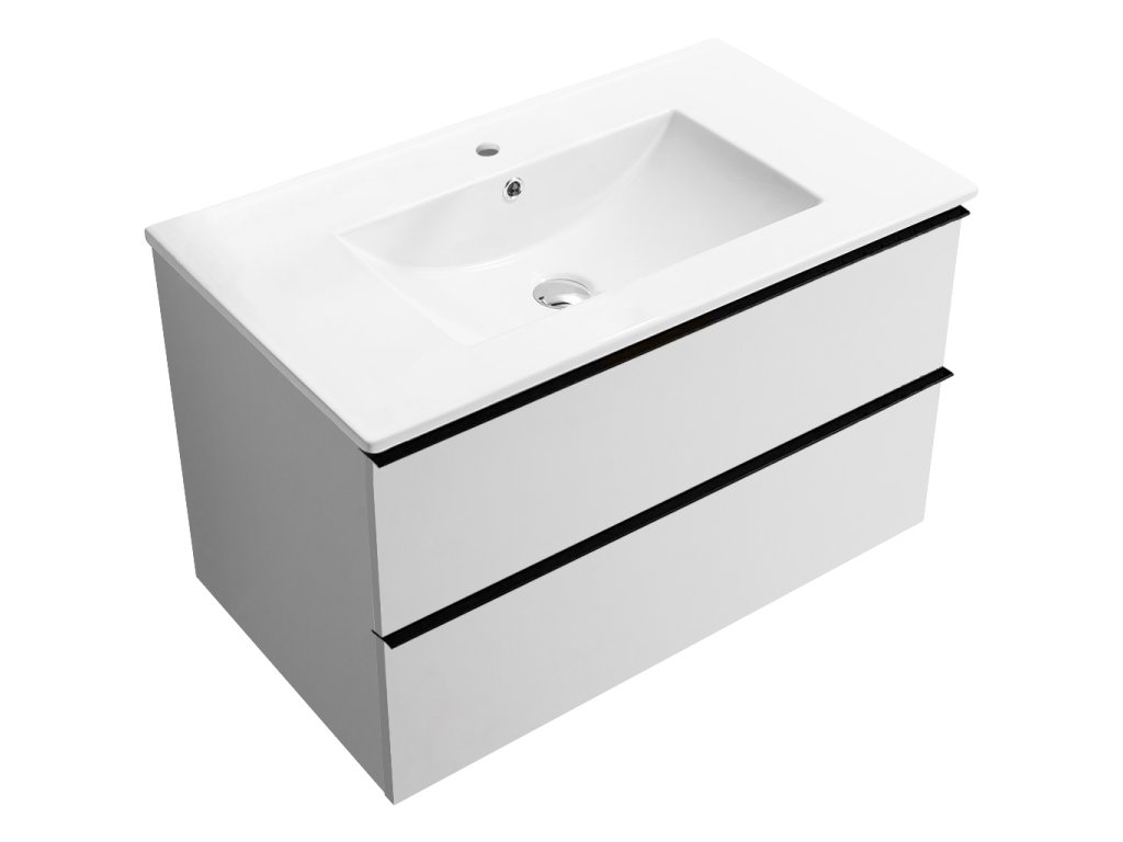 CERANO - Szafka łazienkowa pod umywalkę z uchwytem Velora + umywalka ceramiczna Todo - biały mat, uchwyt czarny - 79x49,8x46 cm