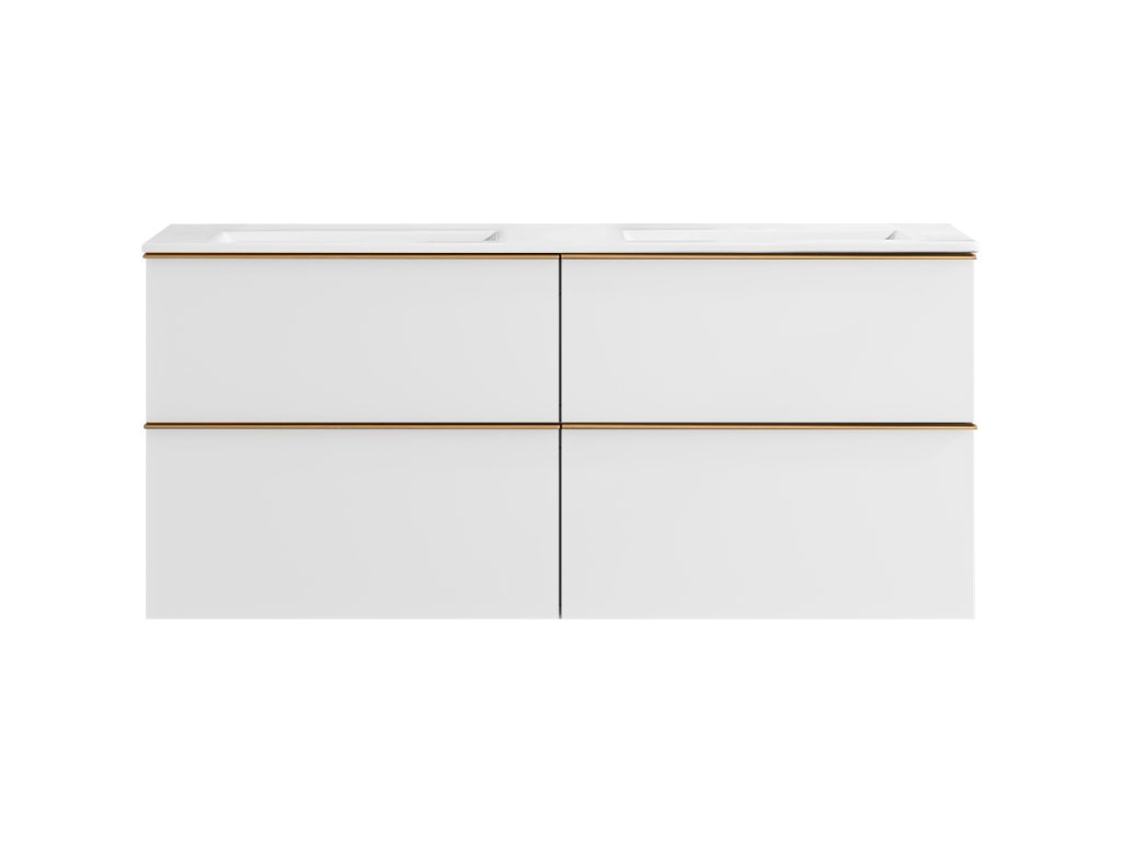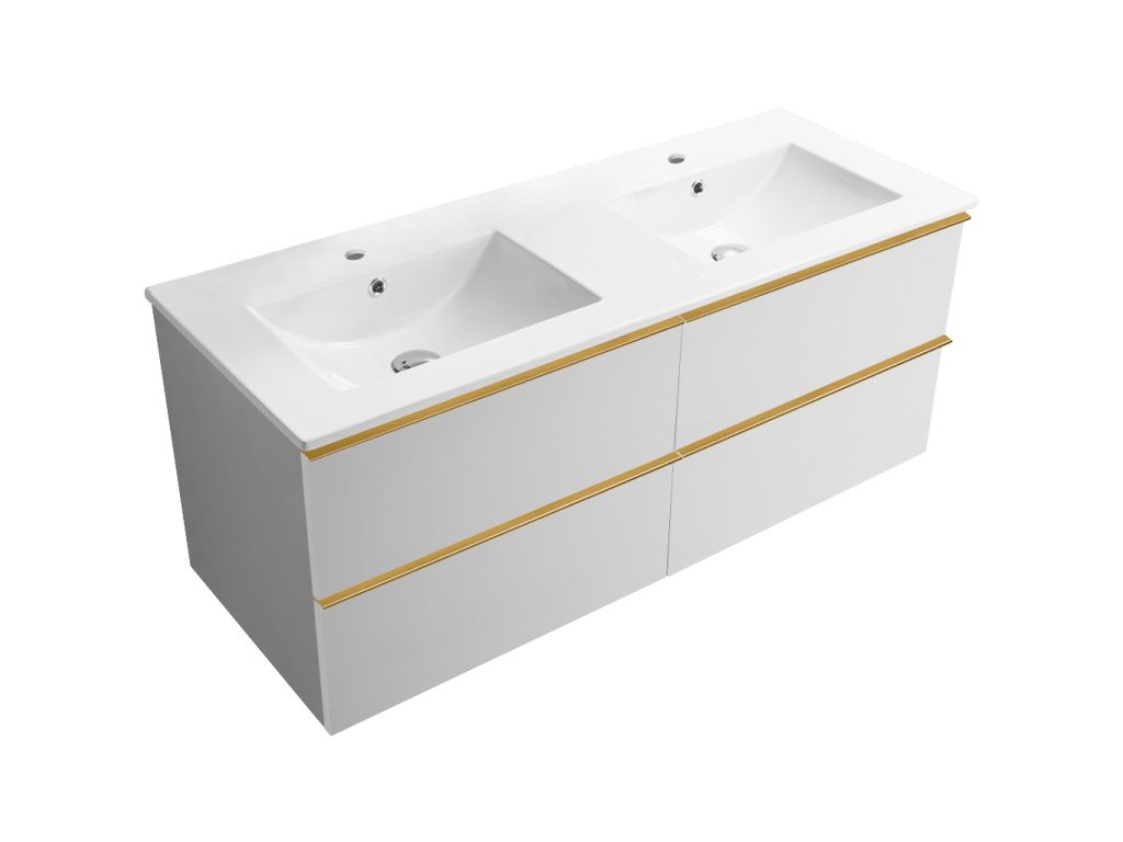 CERANO - Szafka łazienkowa pod umywalkę z uchwytem Velora + umywalka ceramiczna Todo - biały mat, uchwyt złoty - 119x49,8x45,2 cm