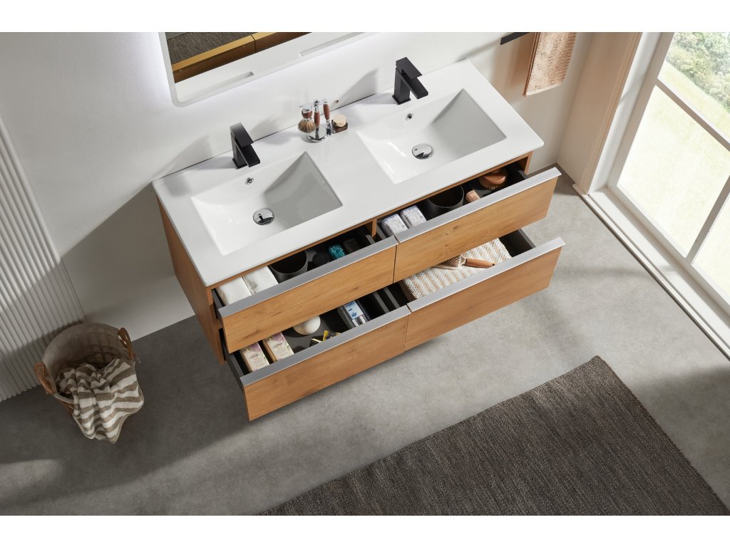CERANO - Szafka łazienkowa pod umywalkę z uchwytem Velora + umywalka ceramiczna Todo - dąb miodowy, uchwyt chromowany - 119x53x45,2 cm