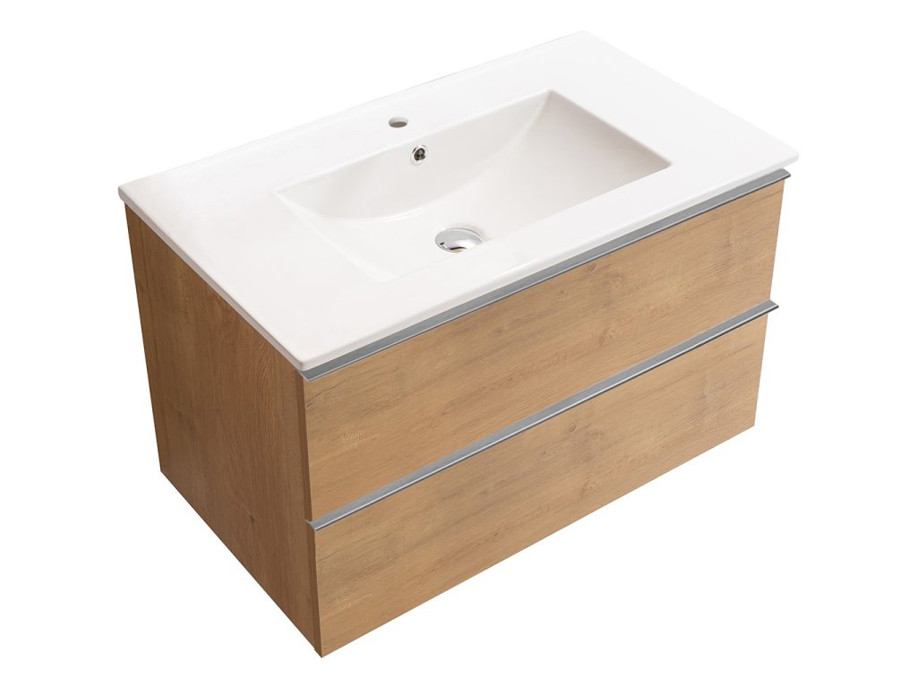 CERANO - Szafka łazienkowa pod umywalkę z uchwytem Velora + umywalka ceramiczna Todo - dąb miodowy, uchwyt chromowany - 79x49,8x46 cm