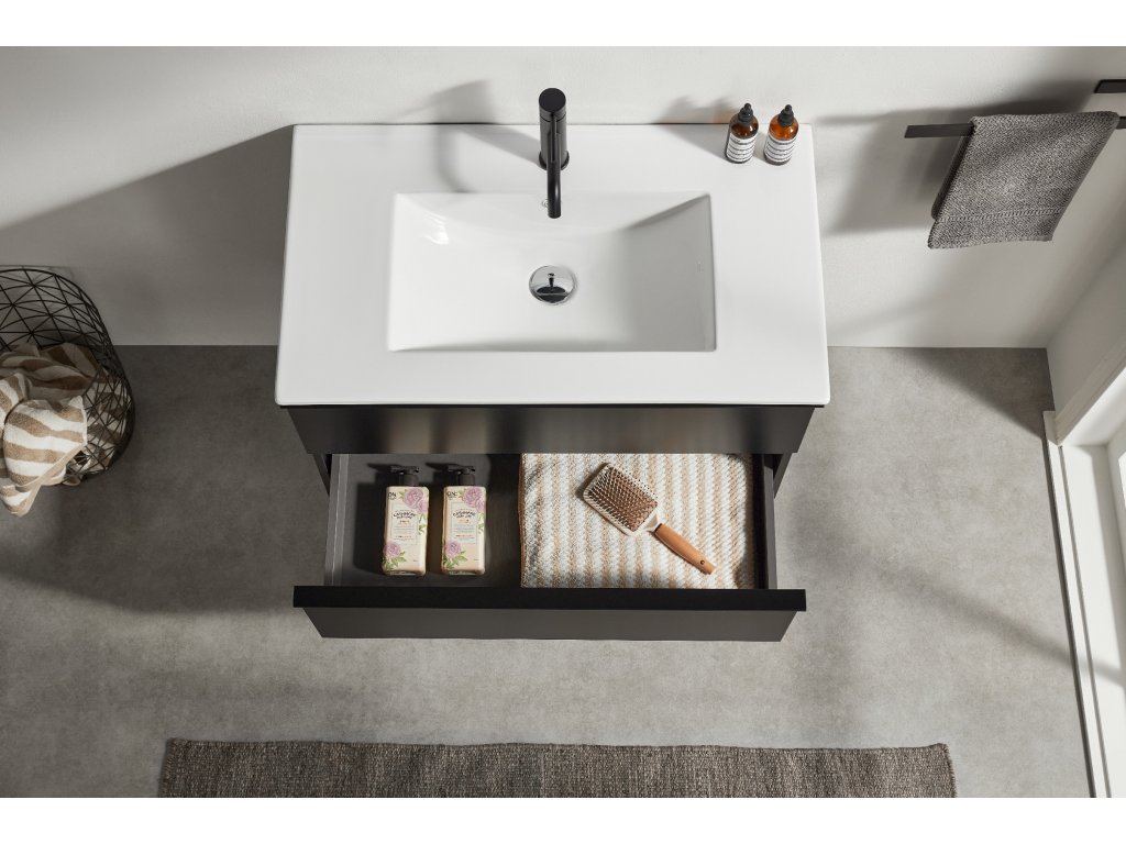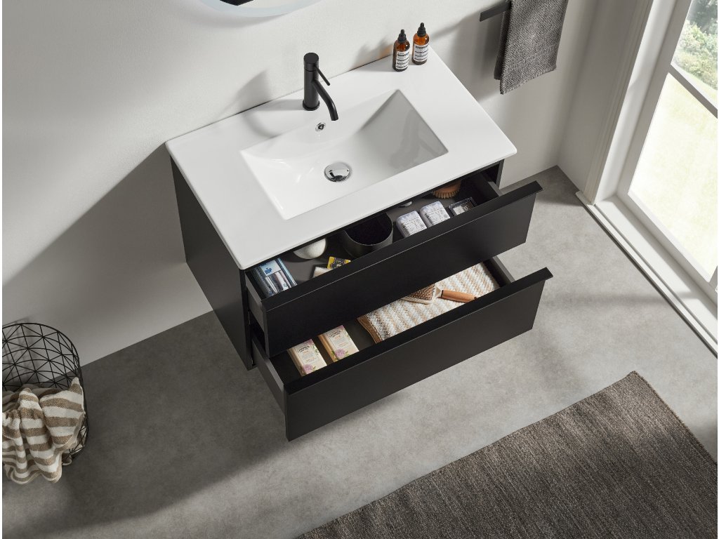 CERANO - Szafka łazienkowa pod umywalkę z uchwytem Velora + umywalka ceramiczna Todo - matowa czerń, czarny uchwyt - 79x53x46 cm