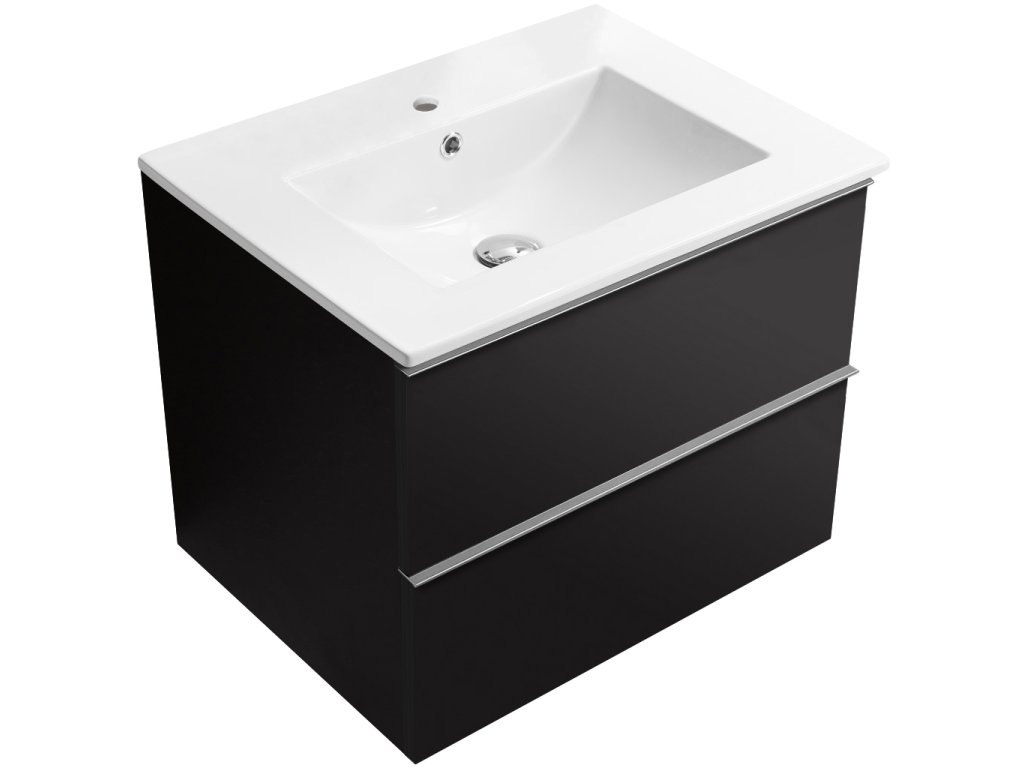 CERANO - Szafka łazienkowa pod umywalkę z uchwytem Velora + umywalka ceramiczna Todo - matowa czerń, uchwyt chromowany - 59x53x46 cm