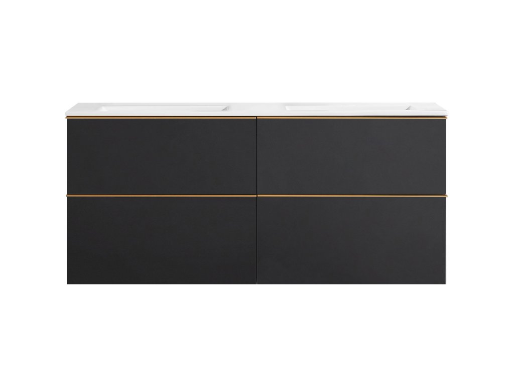 CERANO - Szafka łazienkowa pod umywalkę z uchwytem Velora + umywalka ceramiczna Todo - matowa czerń, uchwyt złoty - 119x53x45,2 cm