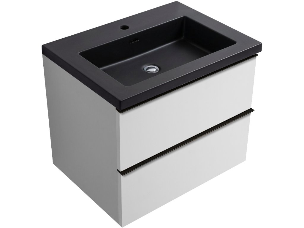 CERANO - Szafka łazienkowa Velora - czarny mat - czarny uchwyt + Umywalka ceramiczna Ovo - biały mat - 69x53x46 cm