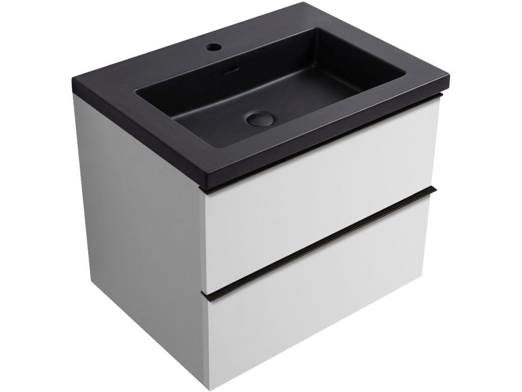 CERANO - Szafka łazienkowa Velora - czarny mat - czarny uchwyt + Umywalka Ovo podświetlana marmurowa - biały mat - 59x53x46 cm