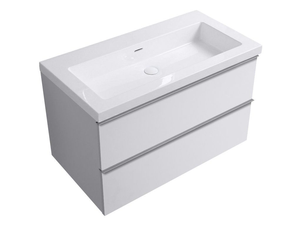 CERANO - Szafka łazienkowa Velora - matowa biel, chromowany uchwyt + umywalka marmurowa Ovo podświetlana - połysk biały - 80,5x58x46,5 cm