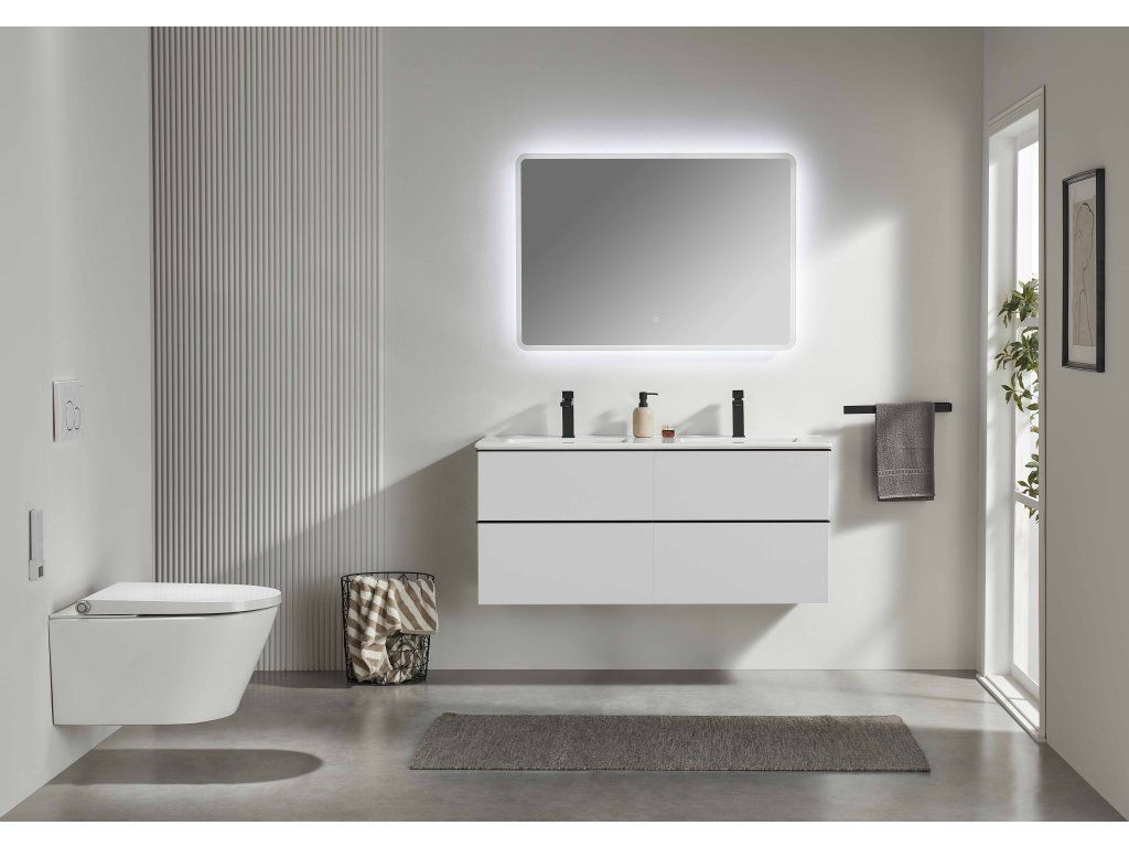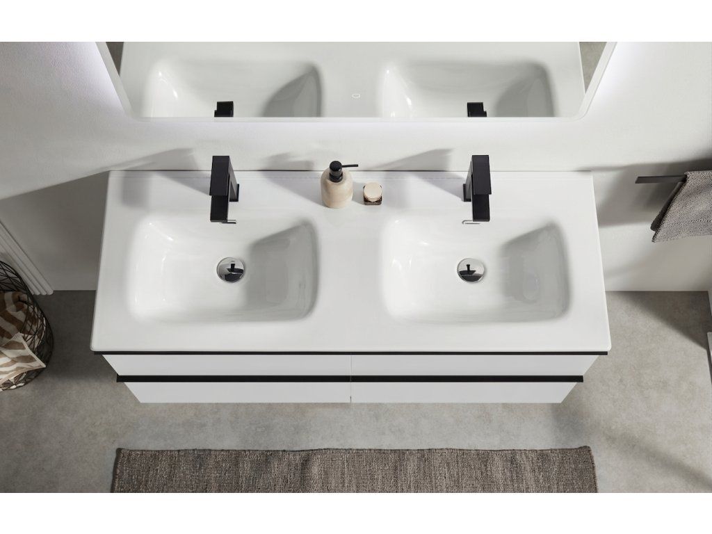 CERANO - Szafka łazienkowa Velora - matowa biel, czarny uchwyt + umywalka ceramiczna Novo - połysk biały - 121x54,5x46,5 cm