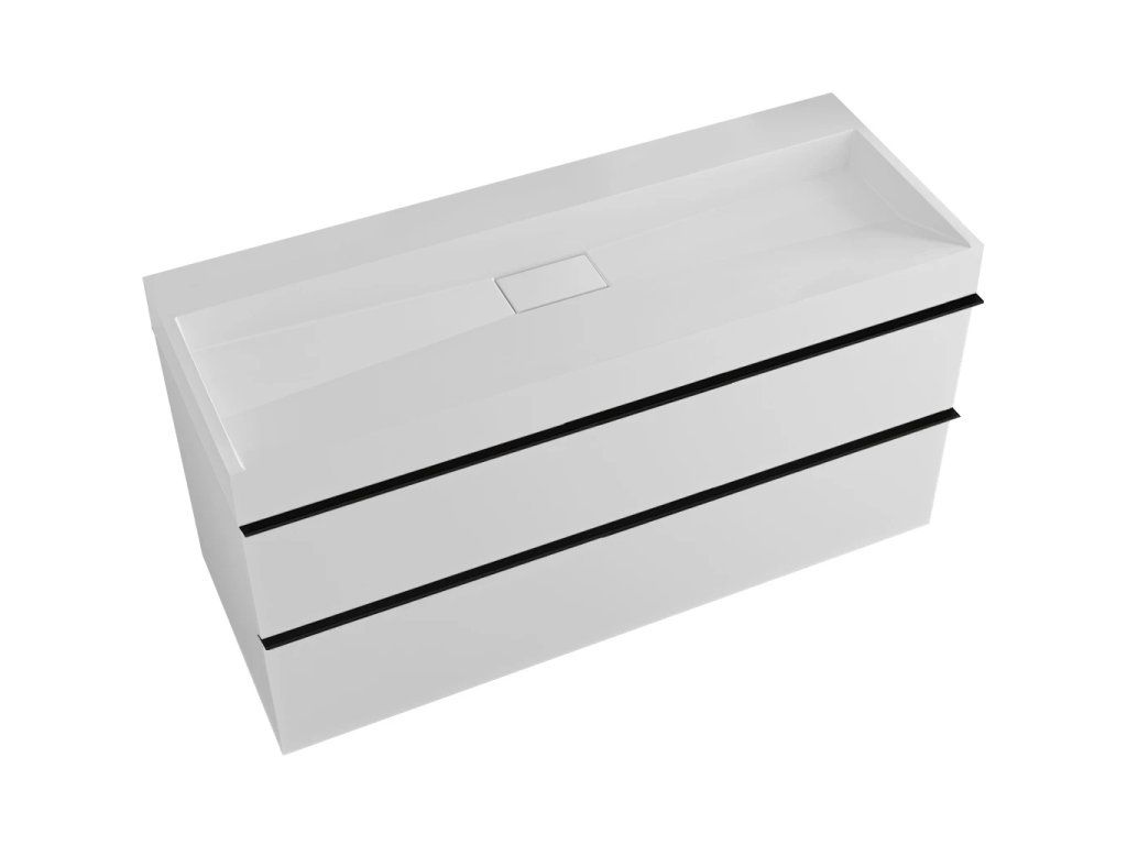 CERANO - Szafka łazienkowa Velora - matowa biel, czarny uchwyt + umywalka marmurowa Vita podświetlana - matowa biel - 100x63x46,5 cm